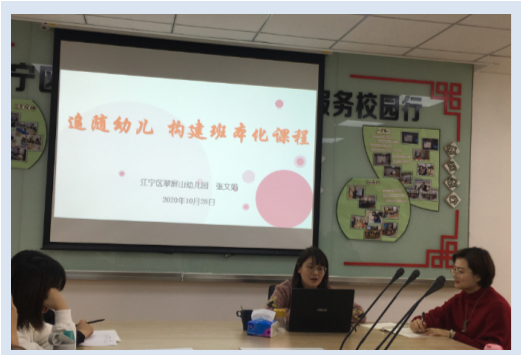 接着,张园长结合翠屏山幼儿园班本化课程的实践案例,从班本化课程的主题来源、主题实施途径以及主题课程开展的收获等方面, 向老师们详细介绍了她们幼儿园在课程游戏化建设过程中实施班本化课程的思路和方法。通过本次学习,不但让老师们对班本课程有了更清晰的理解与认识,更激发了老师们带领幼儿研发班本课程的热情。